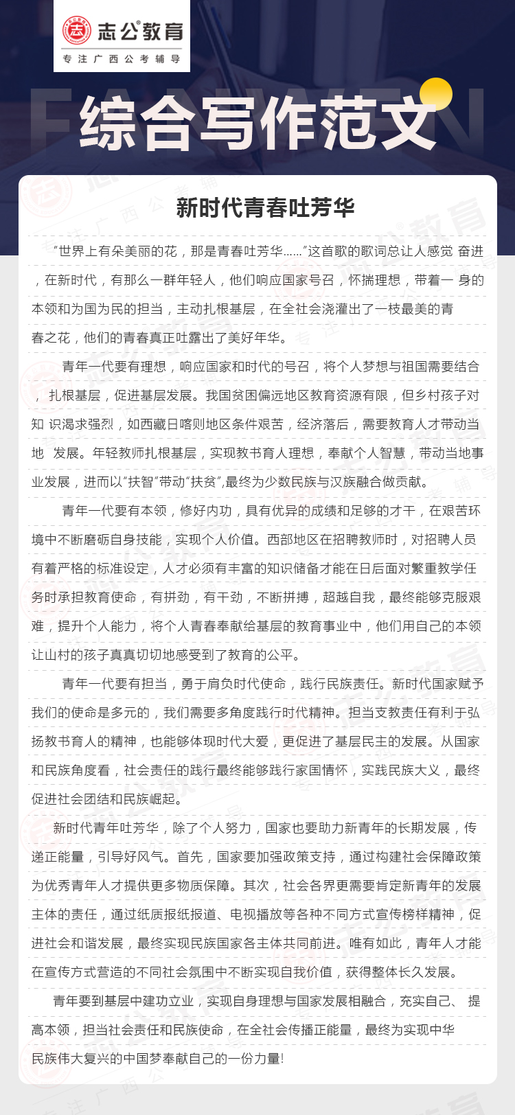 綜合寫作范文四:新時(shí)代青春吐芳華