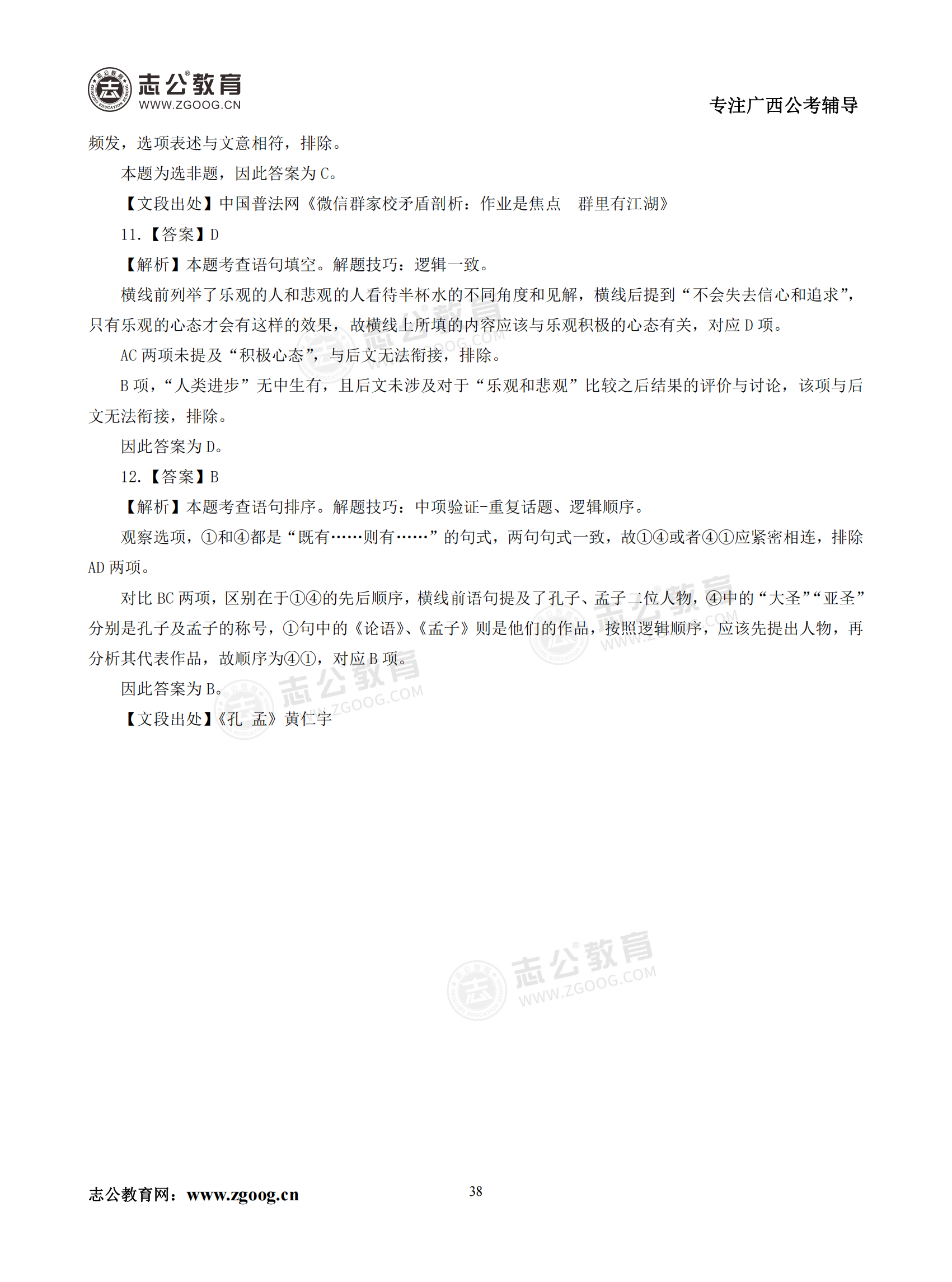 【公考模塊練習】言語理解題四(答案)