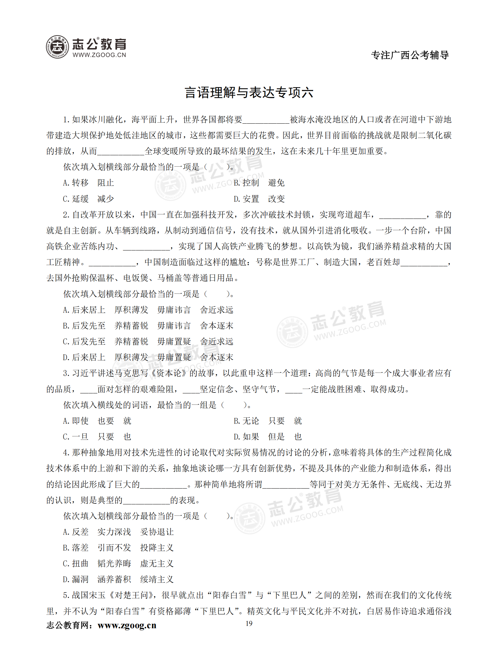 【公考模塊練習(xí)】言語理解題六(試題)