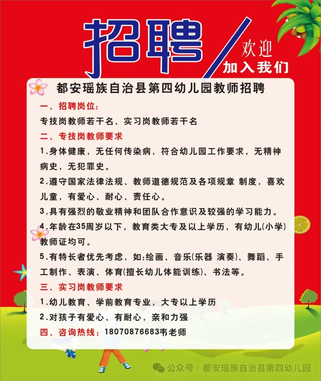 原文標題:安瑤族自治縣第四幼兒園誠聘教師與廚房工作人員若干人