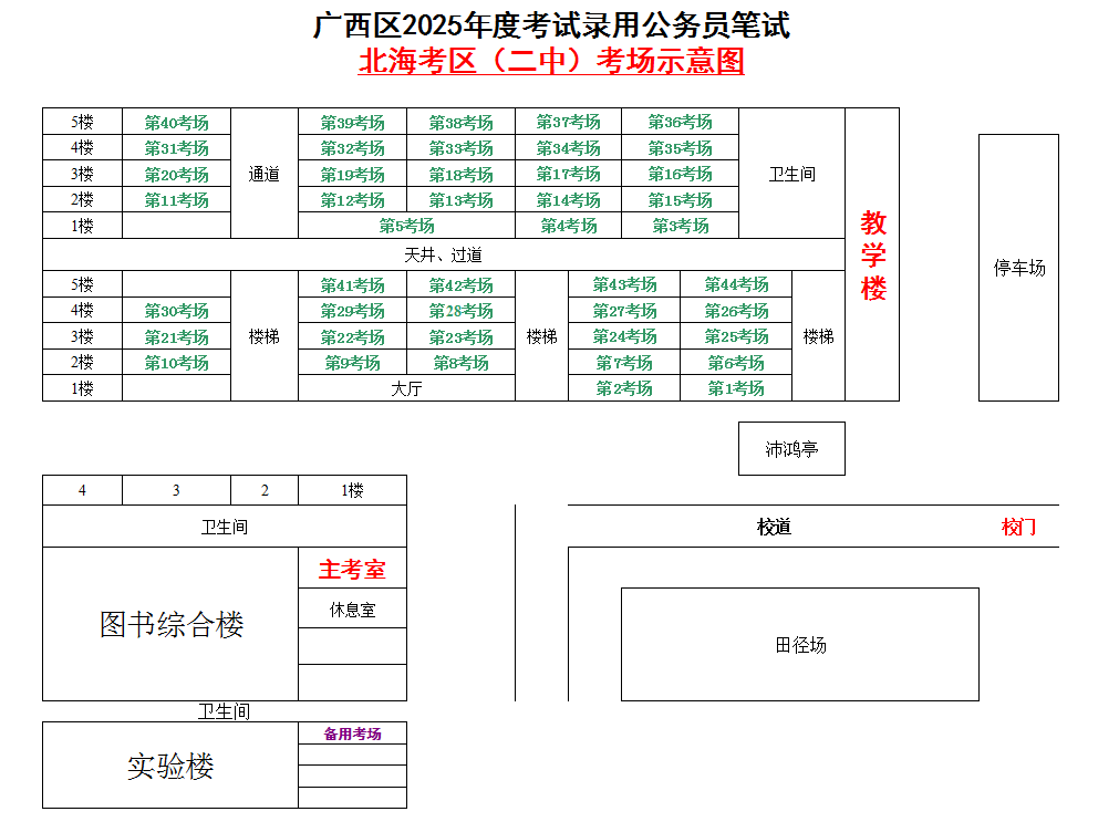 北??紖^(qū)共設(shè)置5個考點,具體考點考場布置分別如下: