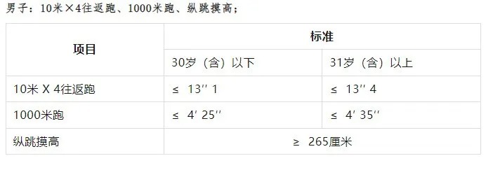 2.體能測評項(xiàng)目和標(biāo)準(zhǔn)按照《公安機(jī)關(guān)錄用人民警察體能測評項(xiàng)目和標(biāo)準(zhǔn)(暫行)》執(zhí)行。體能測評標(biāo)準(zhǔn)報考人員須參加全部三項(xiàng)體能測評,全部達(dá)標(biāo)方為合格,如放棄一項(xiàng)則視為不合格,體能測評合格的方可進(jìn)入下一環(huán)節(jié)。
