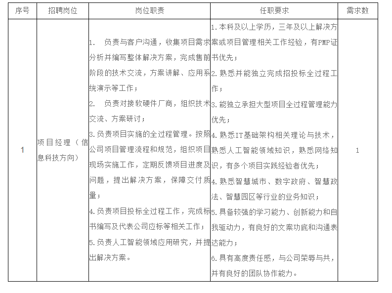 百色數(shù)字科技信息有限公司是中國(guó)—東盟信息港股份有限公司的控制子公司,是經(jīng)百色市國(guó)資委批準(zhǔn)成立的數(shù)字科技公司,定位為百色市重要的數(shù)字經(jīng)濟(jì)企業(yè),公司立足百色,面向全市,常駐辦公地址在百色市政務(wù)服務(wù)中心三樓。公司主營(yíng)業(yè)務(wù)涵蓋產(chǎn)業(yè)互聯(lián)網(wǎng)、政企數(shù)字化和信創(chuàng)安全服務(wù)三大領(lǐng)域,根據(jù)公司發(fā)展需要,現(xiàn)面向社會(huì)公開(kāi)招聘項(xiàng)目經(jīng)理崗位人員,具體公告如下: