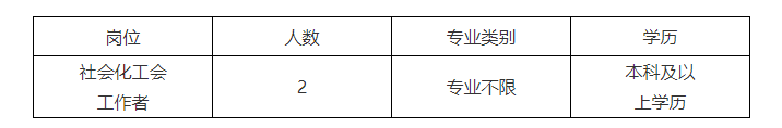 為進一步加強工會工作,我會根據(jù)自身工作需求,現(xiàn)面向社會公開招聘社會化工會工作者2名。現(xiàn)將招聘的有關(guān)事項公告如下:
