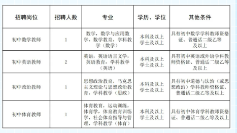 根據(jù)發(fā)展需要,學校擬招聘初中數(shù)學、英語、政治、體育頂崗教師,具體招聘信息如下:
