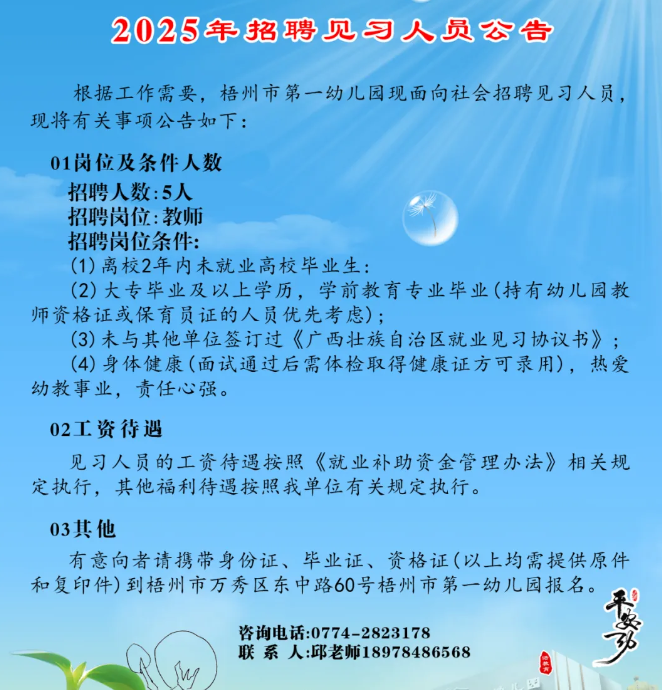 2025年梧州市第一幼兒園招聘見(jiàn)習(xí)人員公告