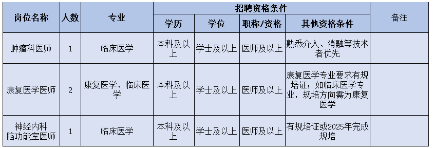 ③列入醫(yī)院人才引進目錄或醫(yī)院根據(jù)??瓢l(fā)展需要的崗位人才,人才資格條件按特殊情況辦理,采用一人一議。