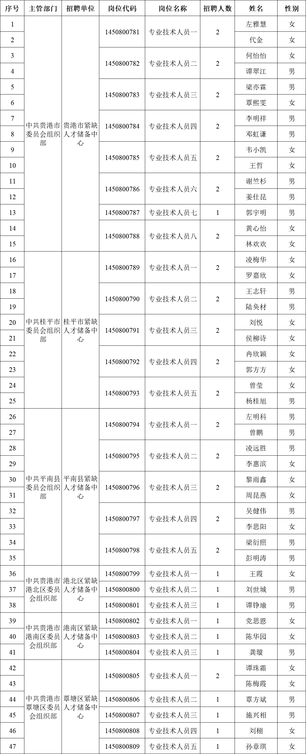 2025年貴港市引進重點領(lǐng)域重點產(chǎn)業(yè)急需緊缺(高層次)人才進入考察人員名單公告