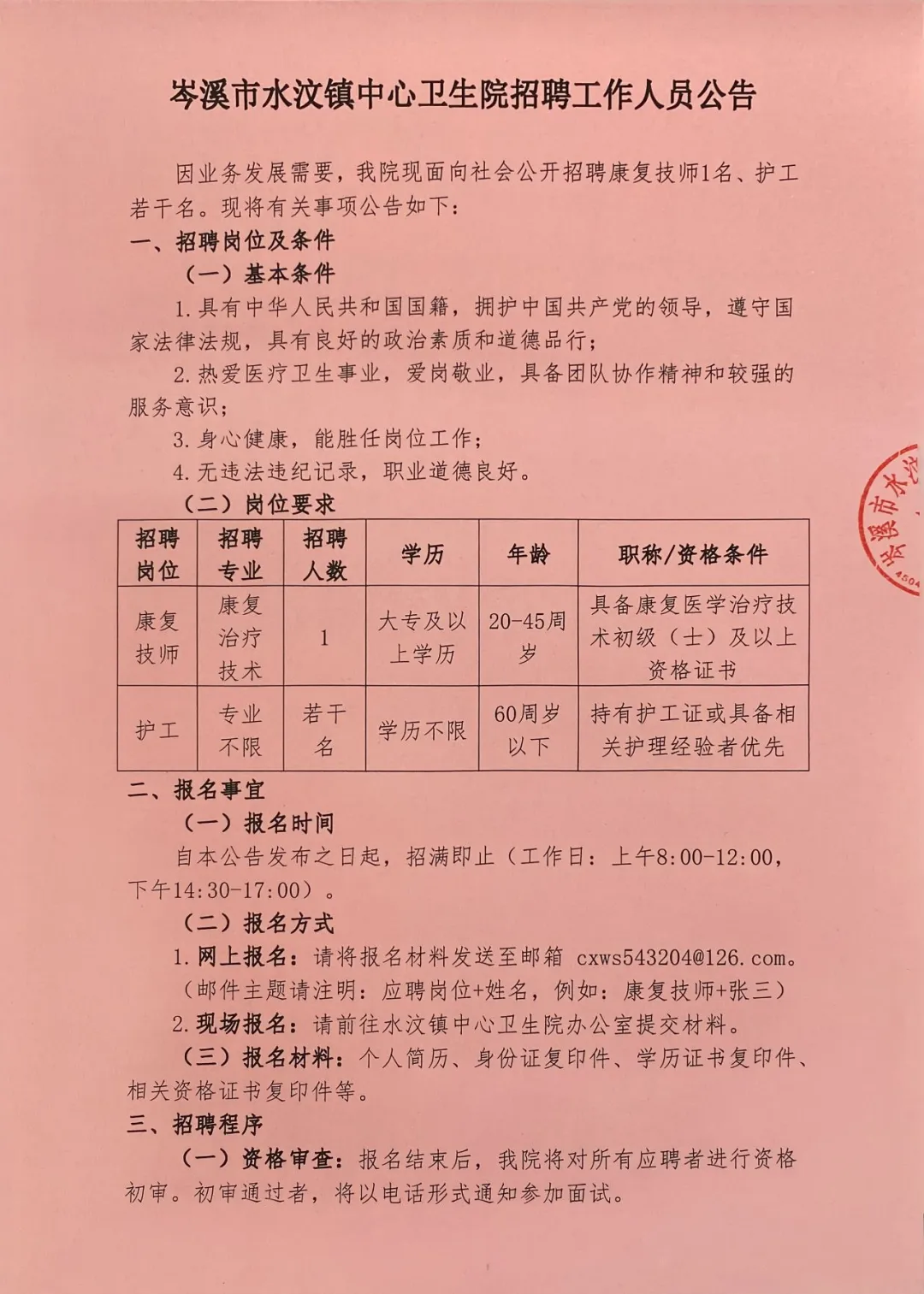 2025年梧州岑溪市水汶鎮(zhèn)中心衛(wèi)生院招聘護士和康復技師