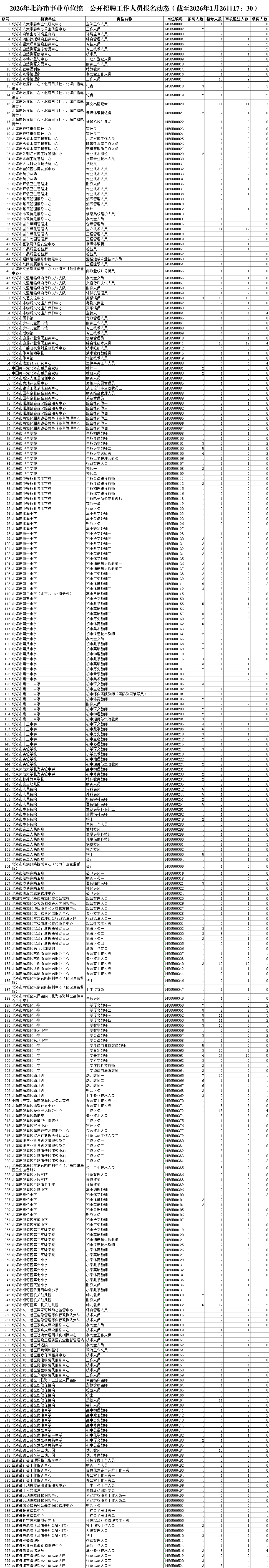 2026年北海市事業(yè)單位統(tǒng)一公開招聘工作人員報(bào)名動(dòng)態(tài)(截至2026年1月26日17:30)