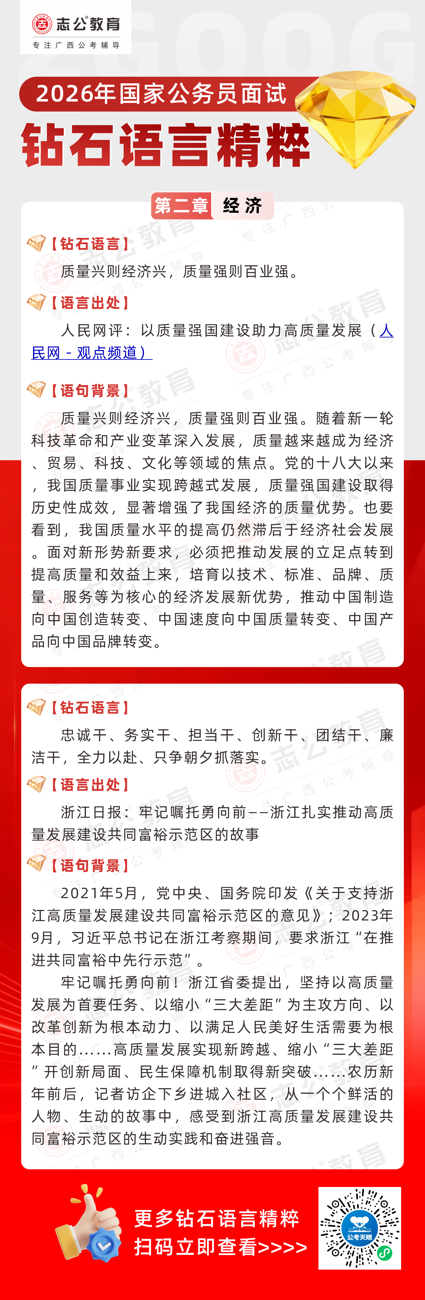 志公教育推出《2026國家公務員面試·鉆石語言精粹》!幫助考生把握經濟類題目應答邏輯,提升語言表達層次,助你在面試中脫穎而出。備考2026國考面試,從掌握“鉆石語言”開始!