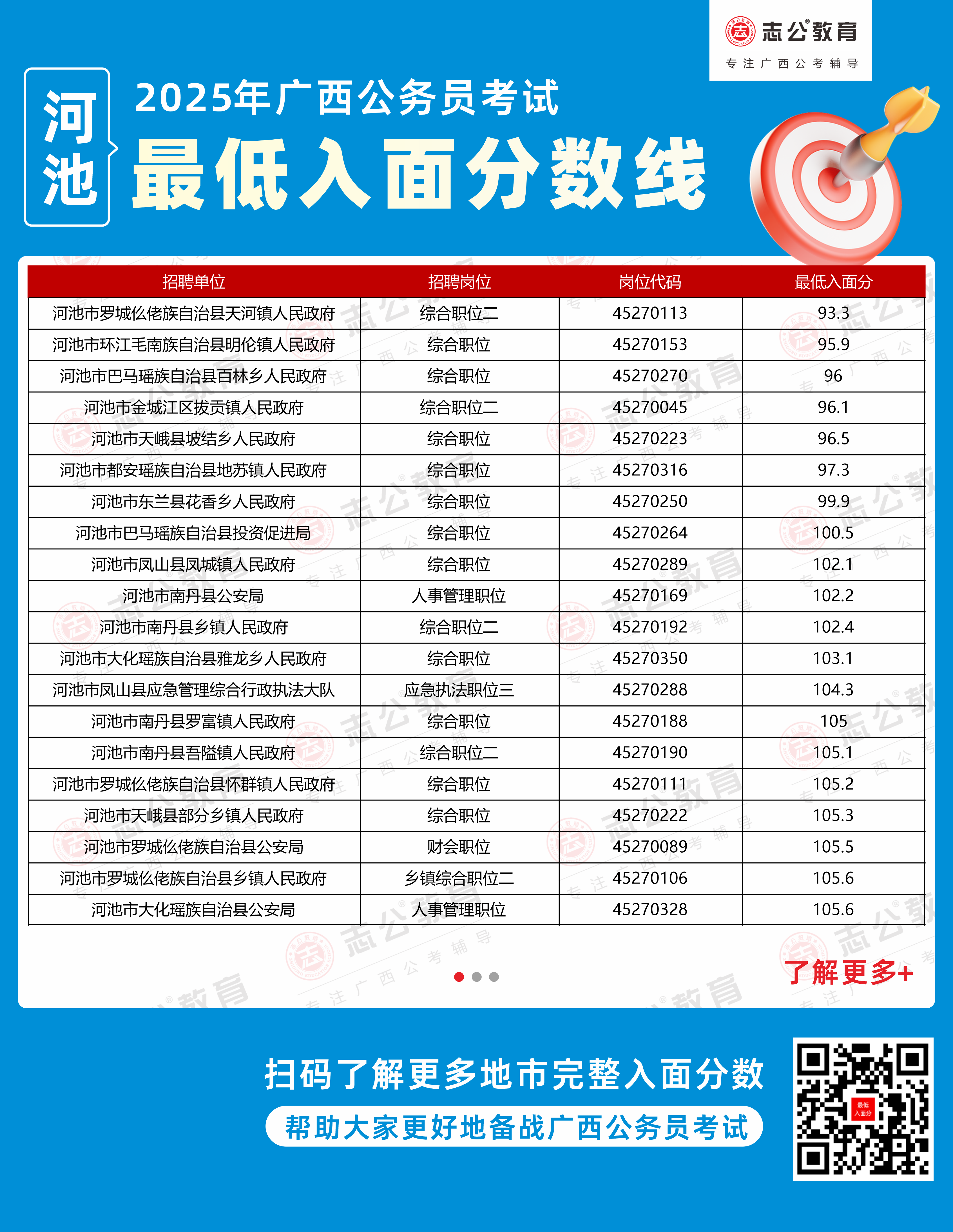 (點(diǎn)擊下載更多2025年河池公務(wù)員最低入面分?jǐn)?shù),數(shù)據(jù)整理自官方發(fā)布的面試資格審查公告)