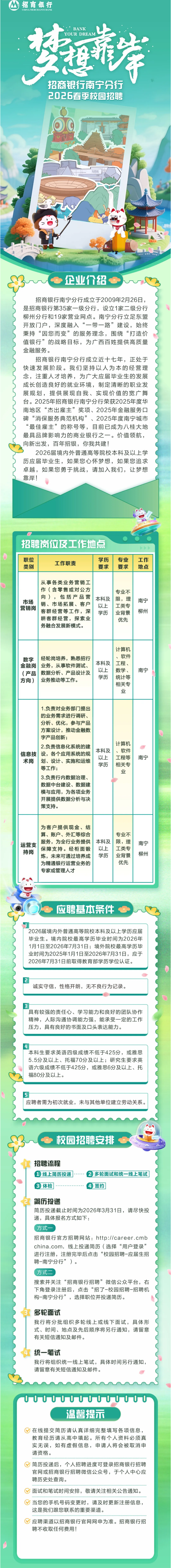原文標(biāo)題:南寧|“夢(mèng)想靠岸”招商銀行南寧分行2026春季校園招聘